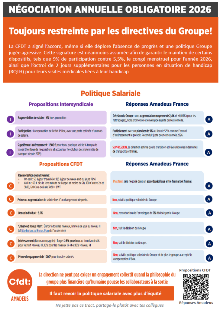 Amadeus reste en décalage avec le secteur du numérique, où les hausses salariales 2026 avoisinent +4 %, contre seulement 2,4 % chez nous.